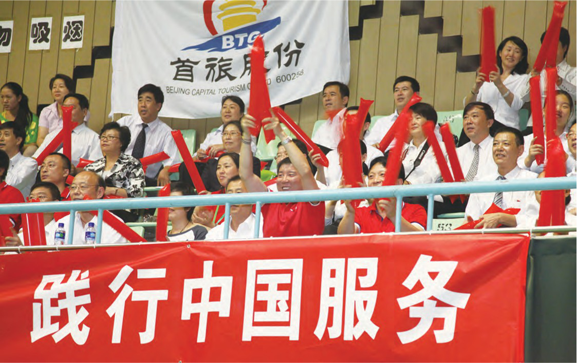 现场观众为运动员加油助威